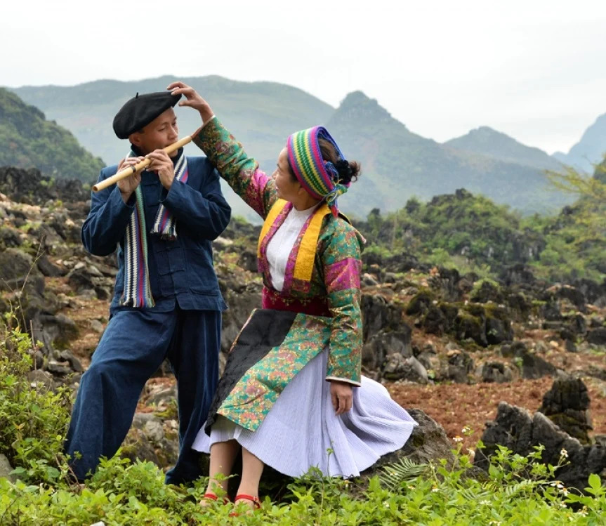 The festival comprises two parts: the ceremonial one and the festive one. During the ceremonial part, the people of Khau Vai offer prayers to honor their origins and celebrate the love between couples. In the festive part, participants can engage in various remarkable activities to gain a deeper understanding of the beautiful culture, savor Ha Giang's specialties, and create unforgettable memories.